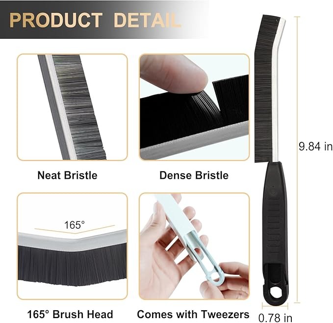 • 【Easy To Clean & Store】Non-Slip Handled grout brush is comfortable and easy to use. Each handles contain a tweezers that will come in handy when cleaning the window tracks to remove any larger debris. It also has a hole that can be easily hung to save space and quick drying.